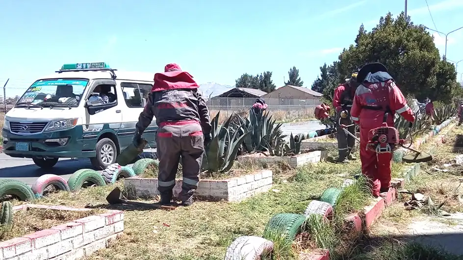 La Dirección de Obras Municipales, la Secretaría Municipal de Gestión Institucional (SMGI), la Secretaría Municipal de Agua, Saneamiento, Gestión Ambiental y Riesgos (SMASGAR) y la Subalcaldía del Distrito 1 realizan trabajos de mejoramiento en el ingreso y salida del Aeropuerto Internacional de El Alto, donde llegarán 45 delegaciones para la posesión del nuevo presidente de Bolivia.